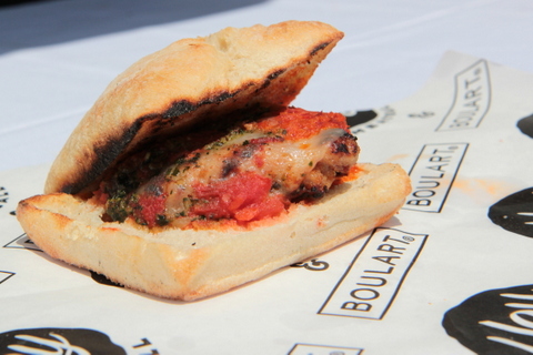 | HEY MEATBALL Big Trouble in Little Italy Burger: Pork patty with tomato gravy, mozzarella cheese, pesto, and spicy pickles. Vegan Big Trouble in Little Italy Burger: Vegan patty, pesto, cashew mayo, and spicy pickles | Look for it as a future feature item and during the Taste of Little Italy |